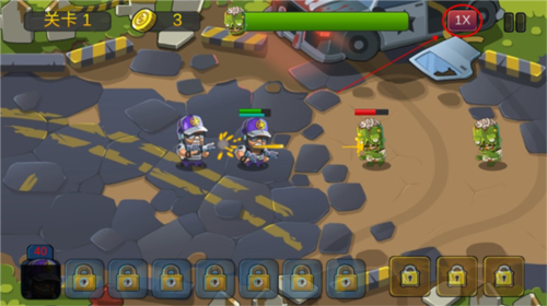 5、而点击右上角的“1X”可以加速关卡进度;