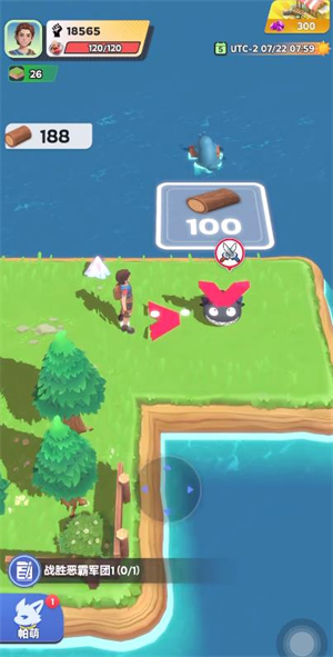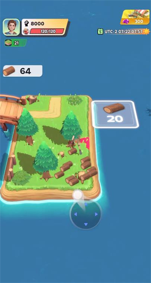 1、进入游戏后玩家滑动屏幕可以操控摇杆控制角色移动,当玩家靠近树木后就会自动收集材料。