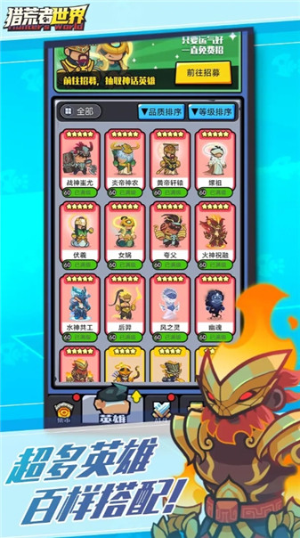 猎荒者世界是一款融合合成与策略的冒险手游。玩家通过合成相同英雄随机获得更强战力,集结各具特色的职业角色,灵活布阵挑战怪物。猎荒者世界以随机招募与神话英雄召唤为核心,结合轻rougelike元素,在狩猎与探索中体验无限阵容搭配的乐趣。