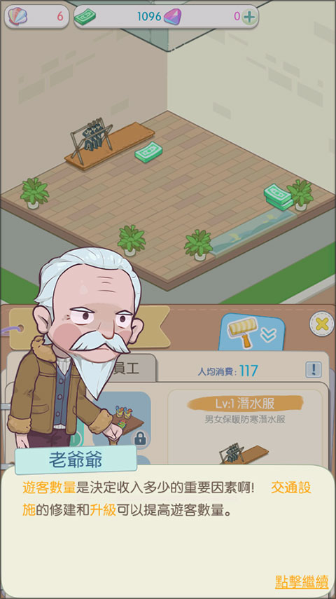 1、下载安装好岛村建设者,进入游戏首先通过点击屏幕来清理垃圾。