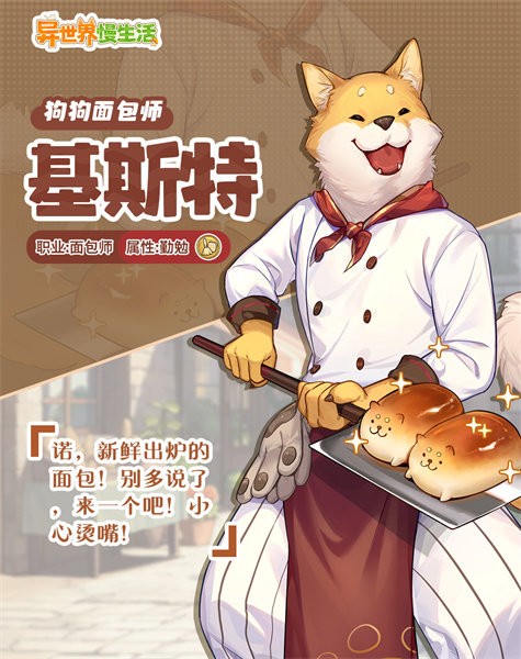 作为一位犬族的面包师,喜欢温暖而蓬松的东西。对面包事业非常热心,希望能让所有人都爱上自己的面包。