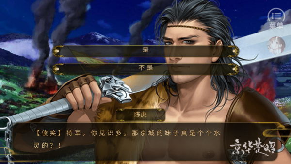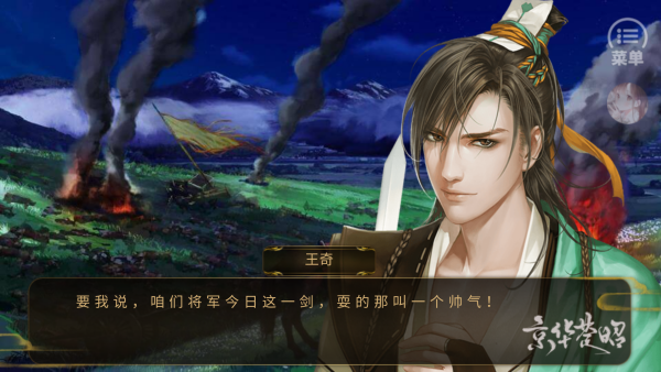 1、开始剧情,玩家扮演一位女扮男装的将军,带领将士们打胜仗。