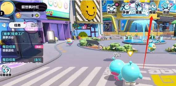 1、首先下载安装好蛋仔派对破解版无限蛋币,点击主页上方的商城。
