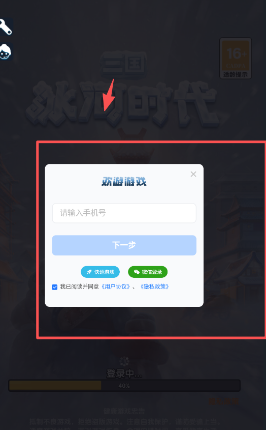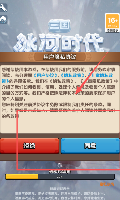 2、接着游戏会弹出用户隐私协议页面,你需要仔细阅读相关条款,特别是关于个人信息保护的内容。