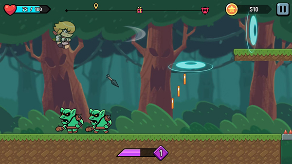 2、当我们触碰屏幕的时候可以进行一边跳跃一边进行空中攻击,连续点击屏幕还可以实现二连跳,