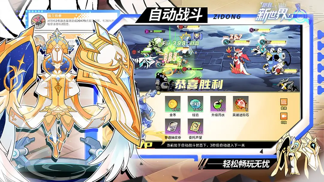 4、自动战斗与手动微操并存:常规战斗可开启自动模式,让多场战斗同时进行,更加轻松愉快。