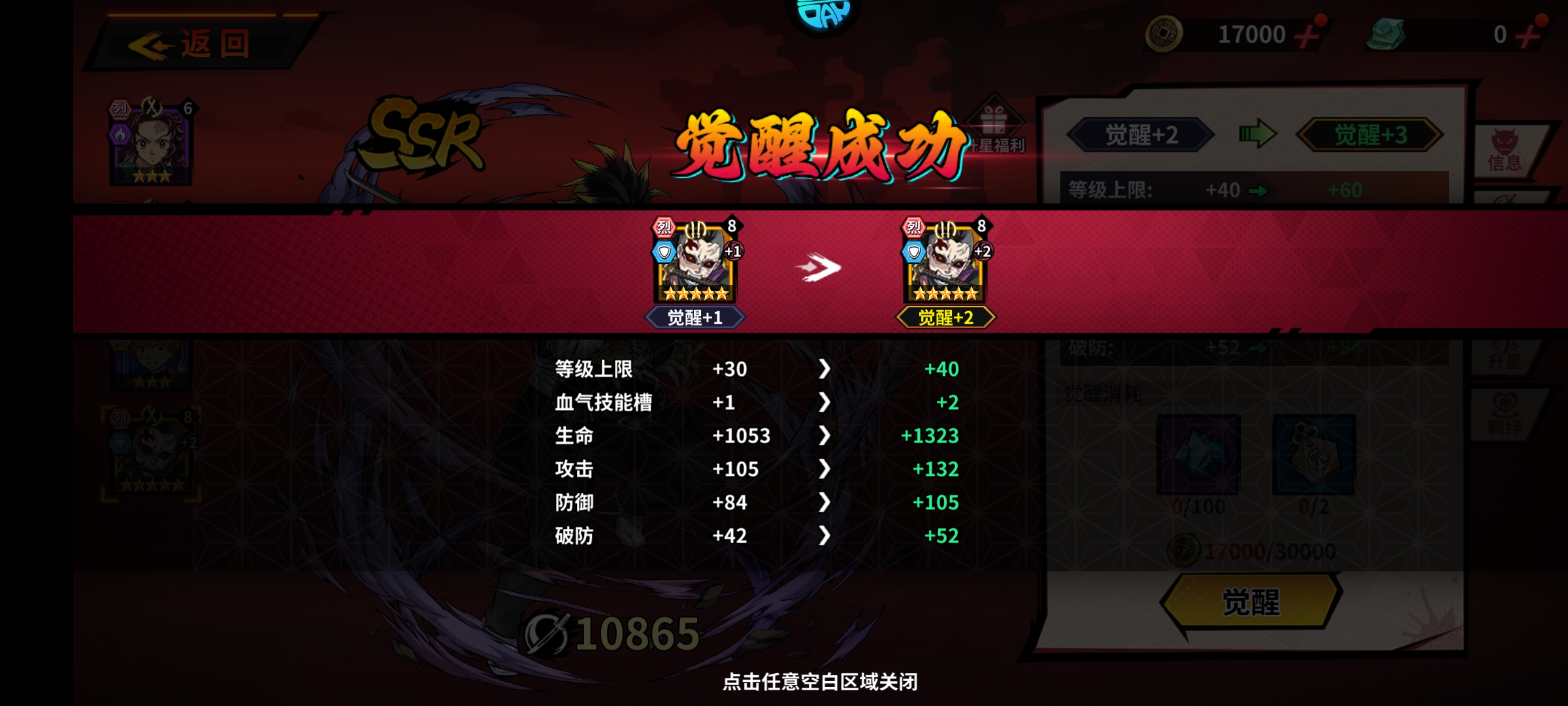 5、达到觉醒所需材料后,英雄将获得觉醒提升,不仅战斗力大幅提升,基本属性也会增强。
