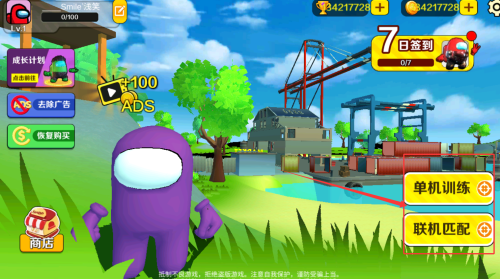 1、进入游戏后,你可以先在商店或“成长计划”里看看,用金币或看广告(ADS)来获得更多资源。