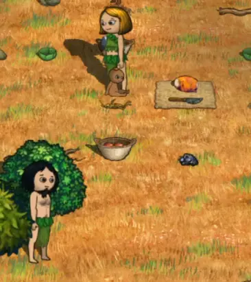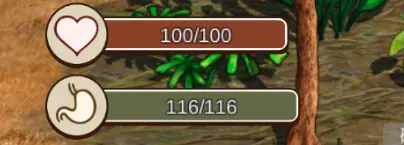 进入部落后,一定要注意角色左上方的饥饿值。因为当饥饿值下降到0时,角色的生命值也会随之下降,生命值归零后,村民就需要重生一世才能再次进入部落。