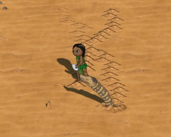 ③沙漠:沙漠地区分布在地图的边缘,是获取青铜矿、锡石矿、刺刺果、茄子、无花果、奥里卡多等物品的主要地貌,该地貌还包含斑羚、嚎狼、沙漠獠牙等动物。村民们需要注意,沙漠獠牙是沙漠的地头蛇!它通过听声辨位来对每一位踏足沙漠里的村民发动攻击!及时躲避或者随身携带绷带急救自己,还会有一线生机!