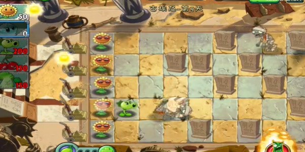 4、这一关需要保证充足的阳光,太阳花的占比要在一半左右,有的时候要作为盾牌来挡住攻击的。