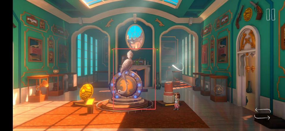 5、门后没有路,你需要将有羽毛的版块下滑到小女孩的地图右边,将其相连接