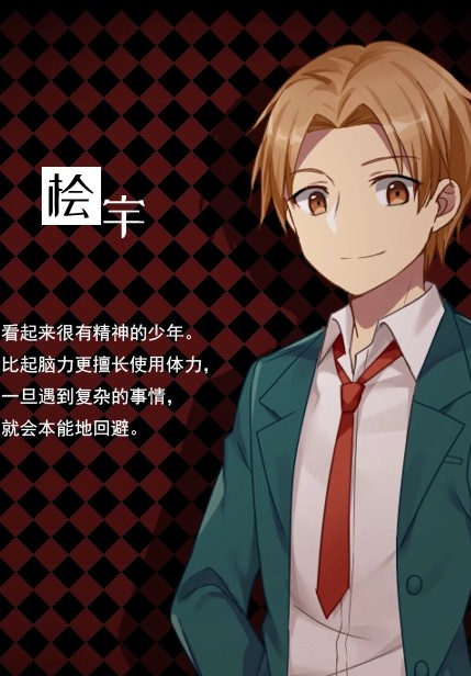 看起来很有精神的少年。比起脑力更擅长使用体力,旦遇到复杂的事情,就会本能地回避。