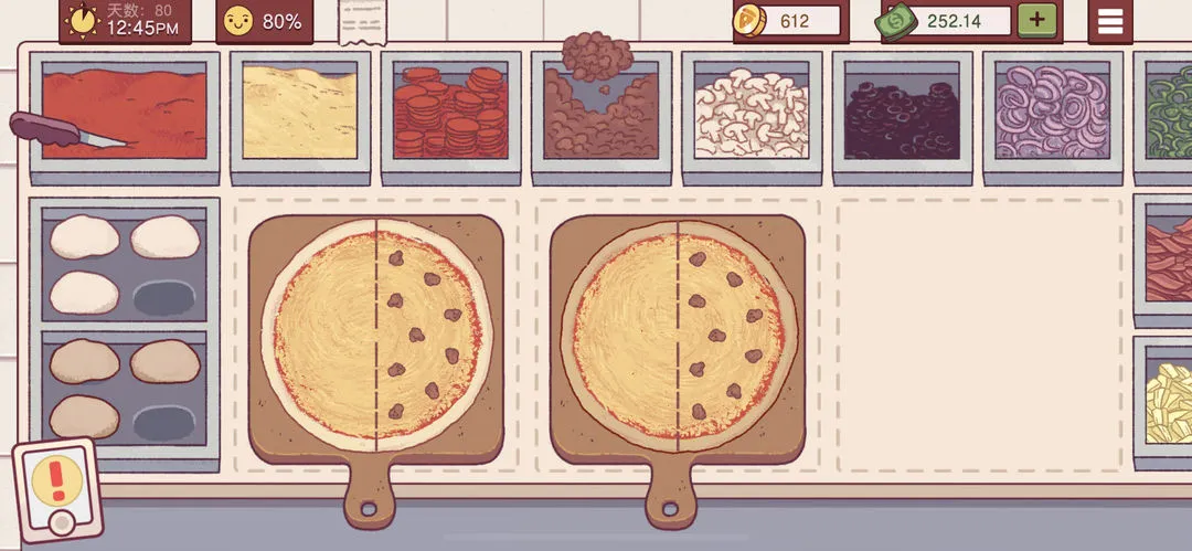 可口的比萨是一款轻松有趣的披萨店模拟经营游戏。玩家将化身披萨大厨,根据顾客要求制作各种口味的披萨,赚取金币升级设备与食材。可口的比萨拥有丰富配料、个性顾客与幽默剧情,操作简单易上手。通过不断精进手艺,打败竞争对手,最终成为街区最受欢迎的披萨店!