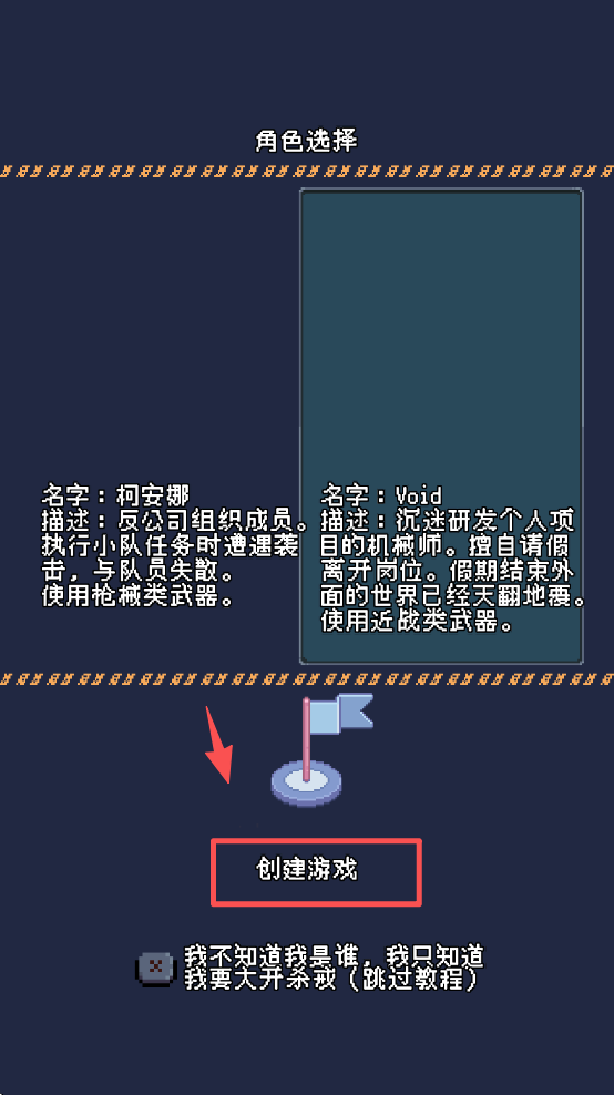 2、接着,在角色选择界面点击“创建游戏”按钮,创建一个新的游戏角色。