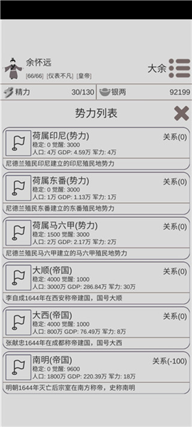 众所周知这游戏还是半成品,不仅bug多,很多功能也没做好,比如已经有南明了,大明还在,起义军也还在:
