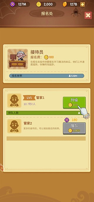 1、通过麻瓜培训、宿舍管理和吸引精英巫师为你的魔法校园增加不同的场景;
