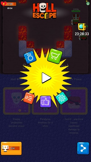 地狱逃脱(Hell Escape)是一款快节奏Roguelike动作手游。玩家将挥舞自动索敌的飞镰,在简约画风的地狱中奔跑穿梭,躲避弹幕并消灭拥有超能力的怪物。通过虚拟摇杆轻松走位,松手即可攻击。地狱逃脱中每关后可选择随机技能强化自身,并升级武器与佩戴特殊帽子,挑战难度递增的数十个关卡,体验爽快不间断的割草战斗。