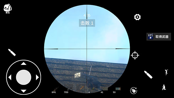 3、左下角摇杆控制移动,右侧准星图标控制瞄准,子弹图标控制开火。