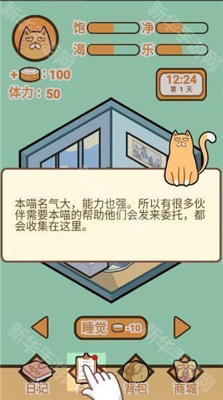 1、游戏以猫咪饲养人类为视角,带给玩家全新的饲养玩法,体验新奇的乐趣。