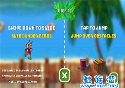 玩家需要尽可能快地跳和滑!避免接近障碍物和鸟类。