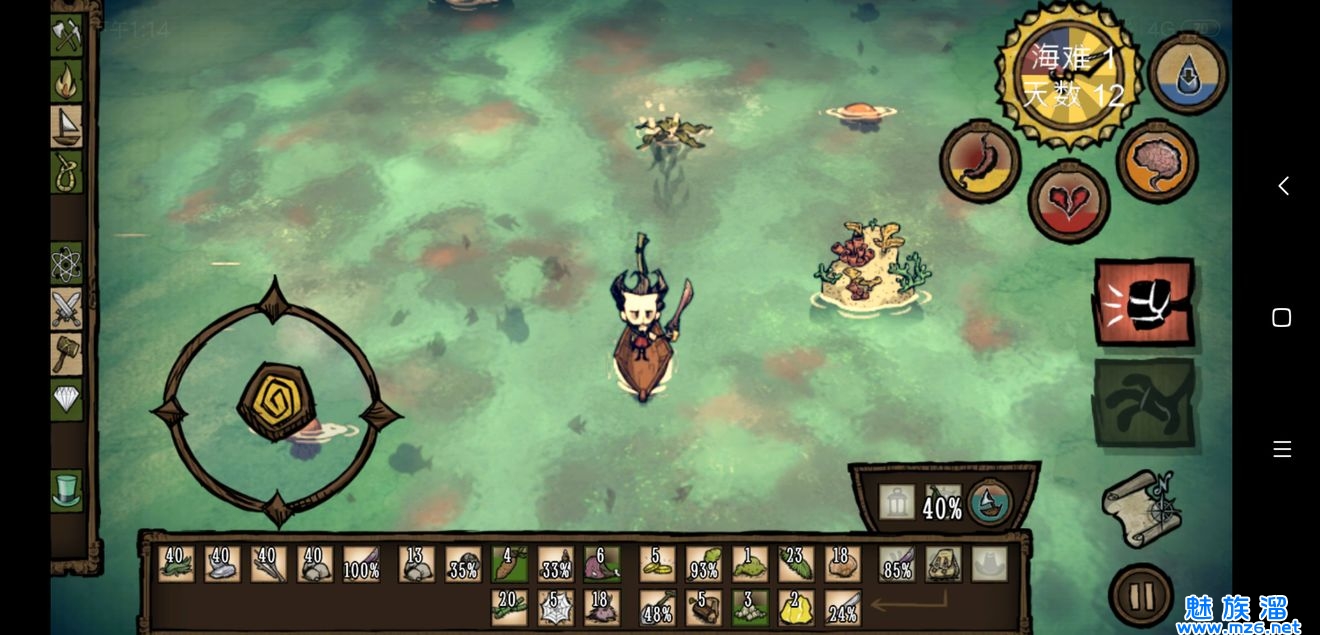 等到你把贝壳船做出来得时候 你可以去打鲸鱼了 至少要有个长矛啥的 而且打鲸鱼是几乎不能走位的 站撸就好