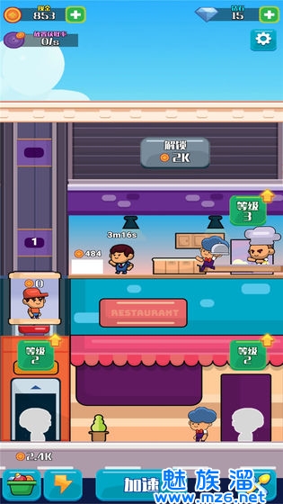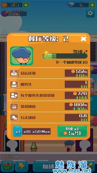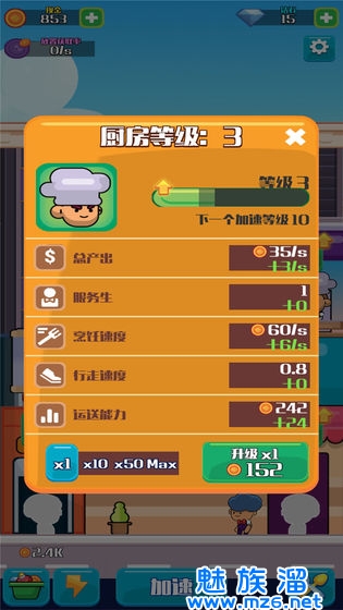 4、不断出售好吃美味的食物赚取大量的金币,并升级你餐厅的装饰让餐厅充满个性化随时可以加入。