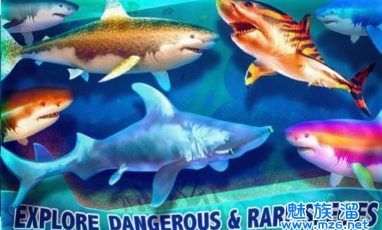 3、新颖的鲨鱼描绘还有丰富的海底场景以及其他的海洋生物给予玩家真实的海底冒险;