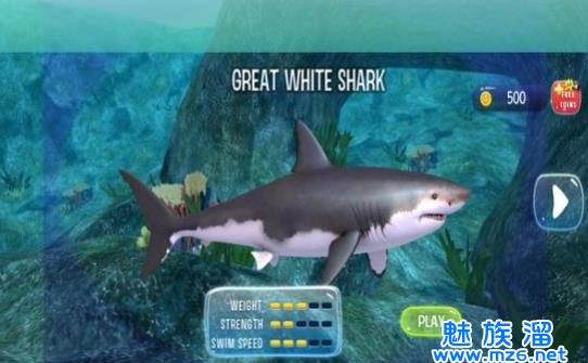 2、各种不同的鲨鱼可以进行选择但是都需要玩家从最基础的形态开始发展自己的体型;