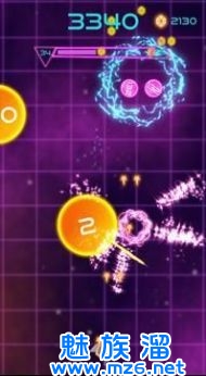 1、游戏中玩家的任务就是将所有出现的霓虹灯敌人射杀,用你的追击波狠狠的打击敌人;