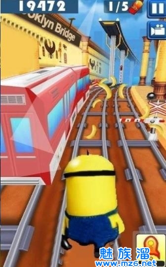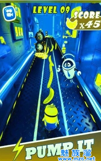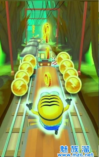 6、在小黄人奔跑的时候可以控制方向,尽可能的躲避前面的障碍和货车。