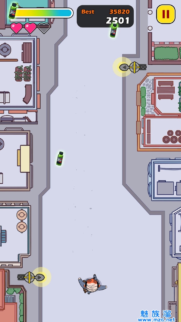 3、路上会随机出现能量瓶,别犹豫,收集它能够让你清醒一小会,加快回家的步伐。