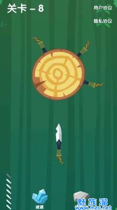1、你的挑战就是将所有的飞刀准确的投掷到不断旋转的原木上;