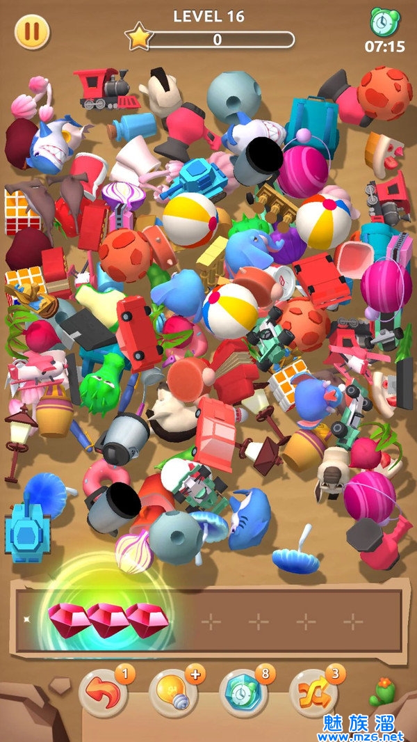 2、通过玩家手指来对关卡中的玩具进行转动,成功实现配对;