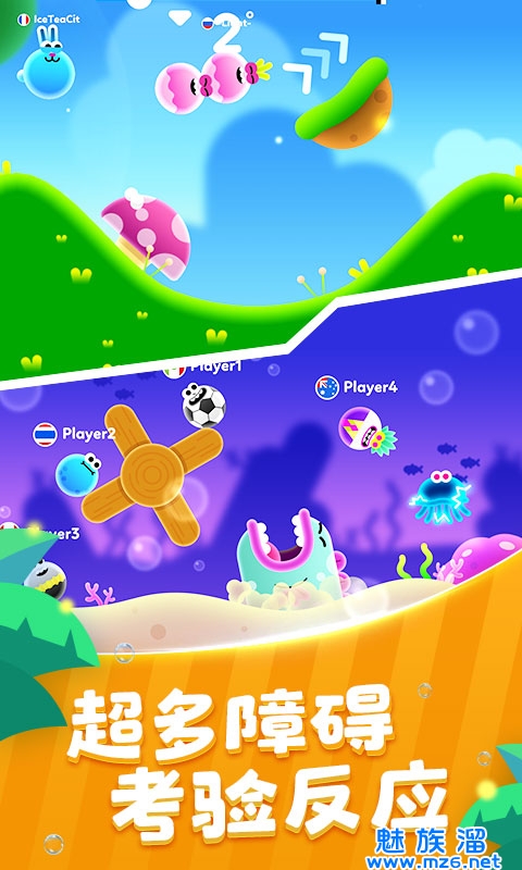 2、家操控各种圆滚滚的“球球”角色横冲直撞取得胜利