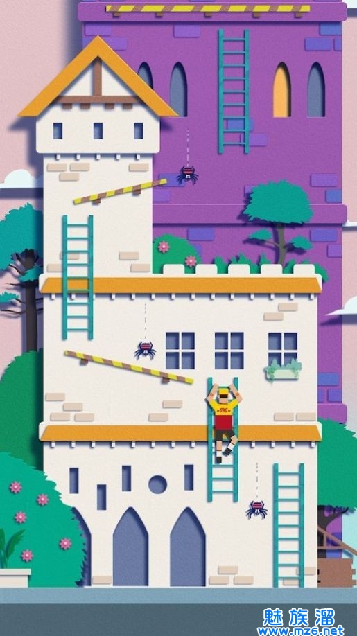 1、画风玩法都非常魔性的跑酷闯关游戏,玩家需要借助梯完成跑酷挑战。