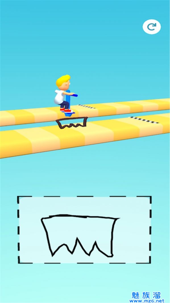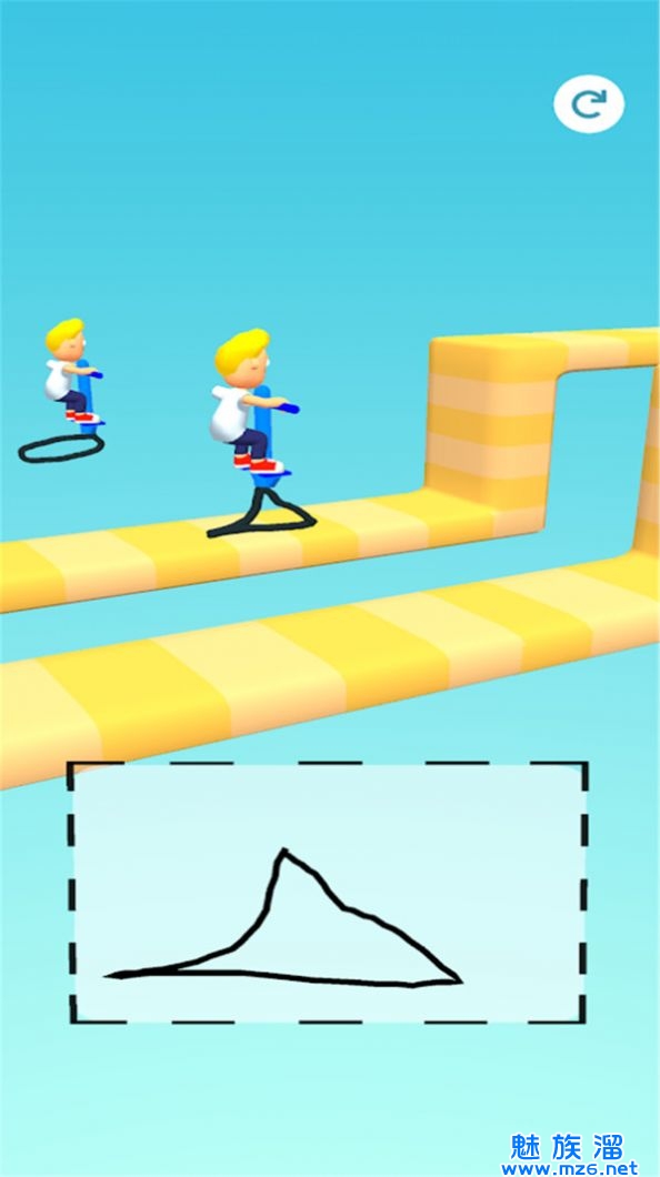 3、控制着卡通小人不断向前奔跑,灵巧手指画画,改变其冲刺方式,由此来避开障碍陷阱。
