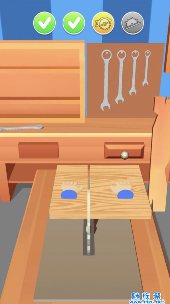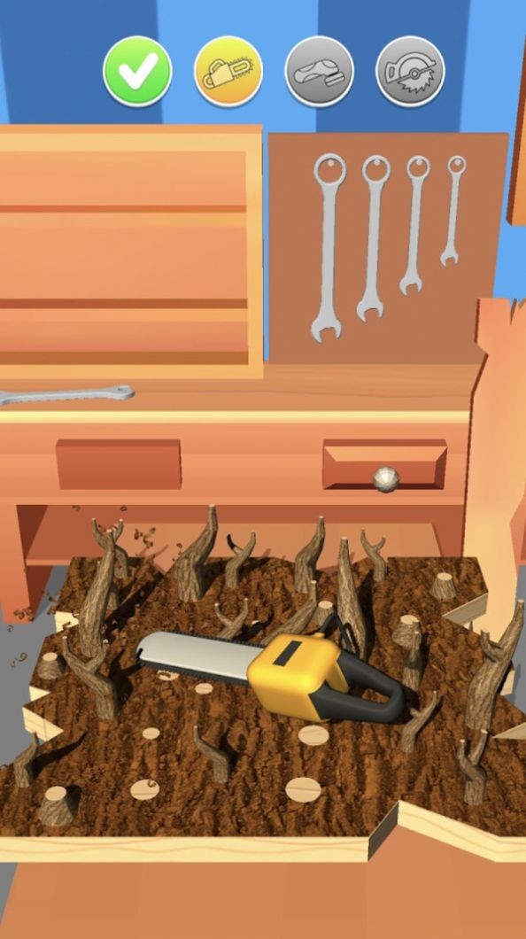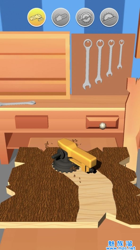 1、请根据每一关的要求来切割木头,注意需要切割的形状和大小。