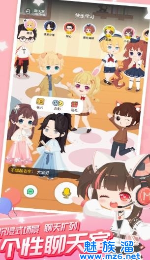 1、自己设置衣服、面貌以及发型等内容,支持多人语音聊天、你画我猜等功能。