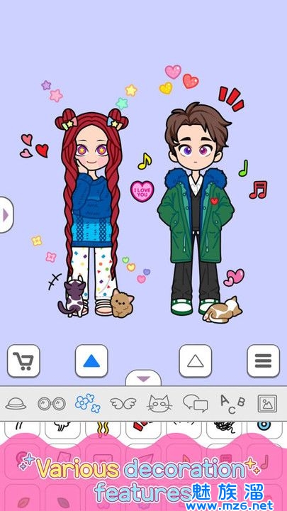 每个女孩都喜欢漂亮,但是困扰在怎么才漂亮,怎么才适合自己,以个平庸的女孩只要打扮了也会变得很好看,多说人靠衣装佛靠金装,在这里你可以随意的搭配自己喜欢的风格。在这里你可以自定义眼睛,皮肤,鼻子,嘴巴,发型,服装,动作等总会有一款适合你的,在这里还可以自定义背景,在背景墙上放上糖果,花,表情等各种装饰,根据自己喜欢的来定义,还可以定义你心目中最喜欢男孩子的类型,各种等。