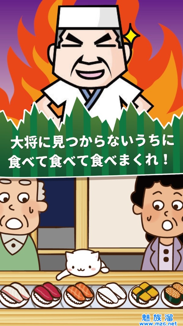 3、一旦被店里的厨师发现,游戏就会结束,所以要在被发现前吃掉更多的寿司。