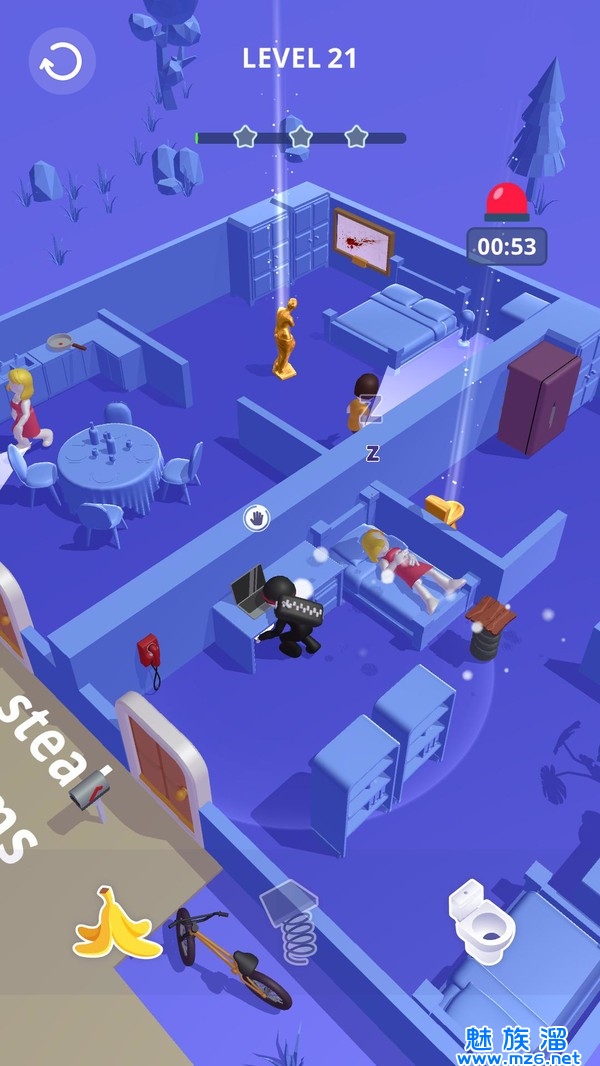 1、各种不同的房间,玩家可以去进行偷盗,房间之中有着各种陷阱;