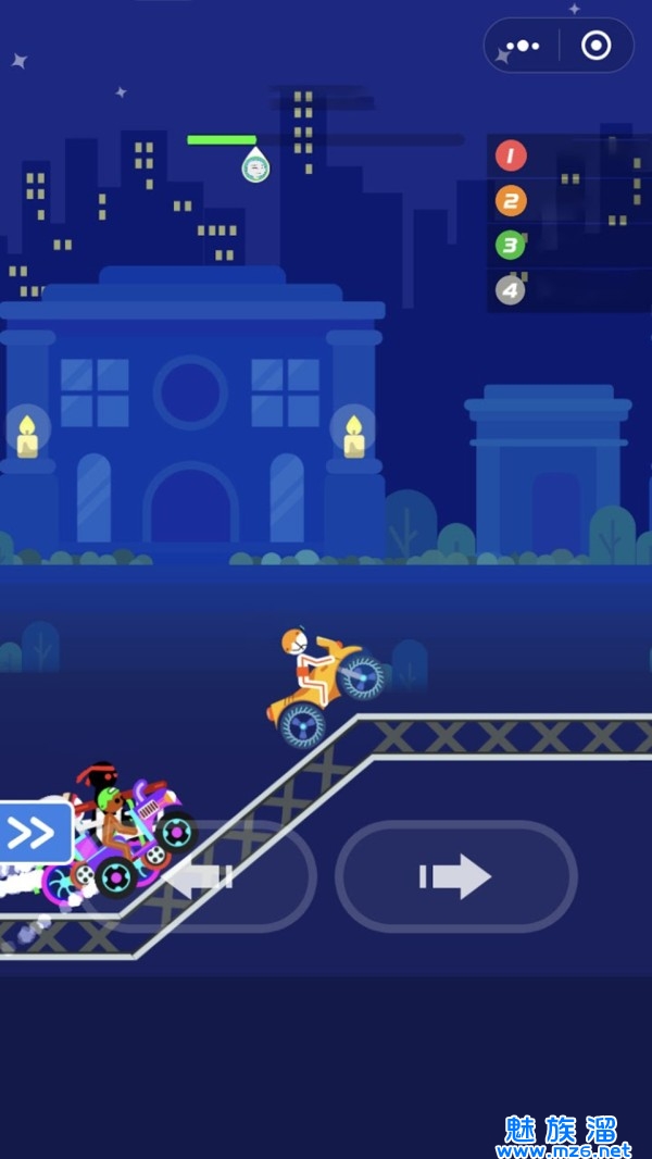 到达终点。游戏简单易上手,火柴人摩托大战为玩家精心设计了多个场景关卡、多种游戏模式。关卡难度会随着玩