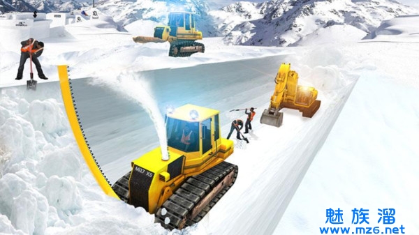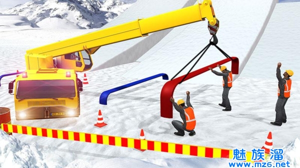2、使用吹雪机,您将参与雪地公园挖掘机的一系列起重机模拟器机械操作;