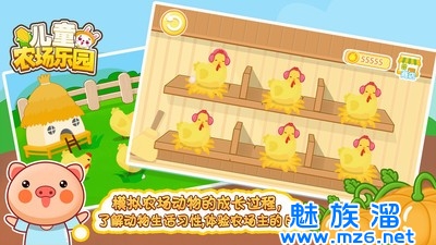 儿童农场乐园是一款模拟儿童在农场里生活的游戏,现代的孩子大多都生活在城市,很少有经历过农村生活的孩子了,他们大多都不知道自己的吃的一些食物都是怎么长出来的,这款游戏就冲分模拟了农场的生活,孩子们可以在这里种植自己喜欢吃的蔬菜还可以真实的摸一摸自己饲养的小鸡捡鸡蛋等等一些农家乐的活动,孩子们在这里可以充分的接触大自然,快来下载儿童农场乐园吧!
