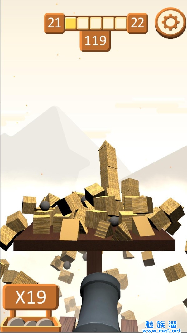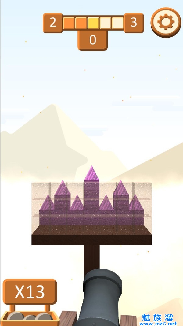 这是一个由一片砖块堆砌的墙壁,可以是使用一个大铁球就可以快速的击倒。