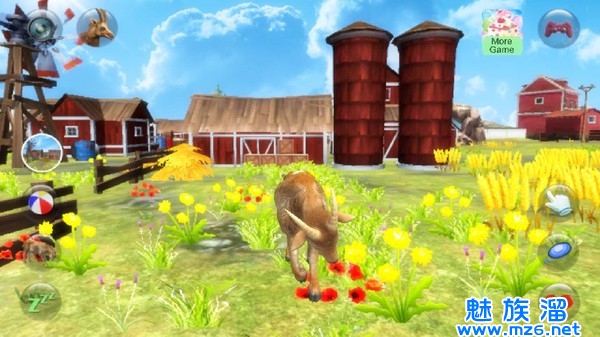 2、 虚拟按钮控制山羊行动,灵活的使用犄角和蹄子,打败人类和其它动物很简单;