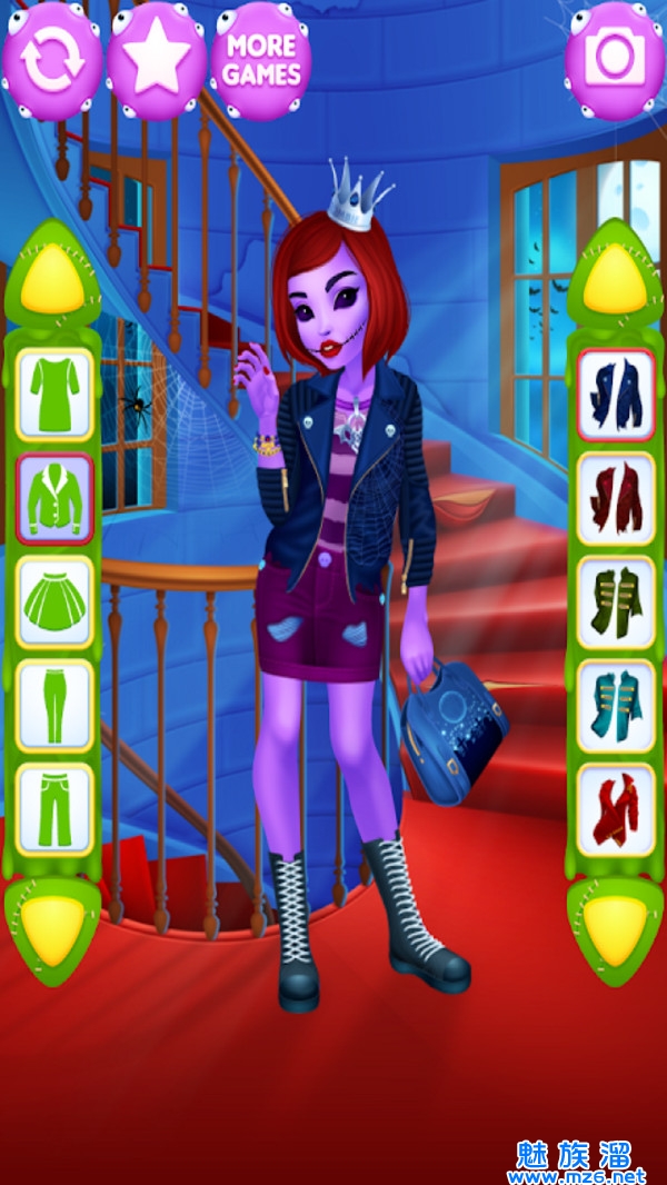 1、僵尸女孩装扮中玩家可以享受到非常轻松的换装游戏玩法。
