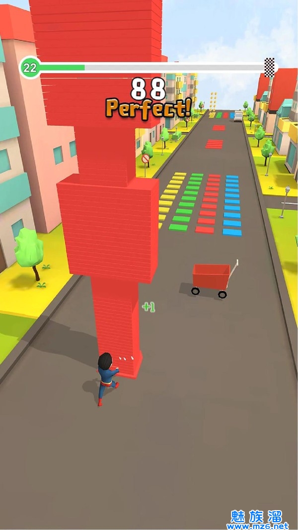 1、千万不要碰到和自己手中砖块不一样颜色的砖块,一旦获取就会清零;