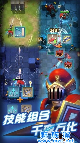 2、每次升级都会获得随机技能,数十种技能随意搭配,以不同的组合应对不同难关。